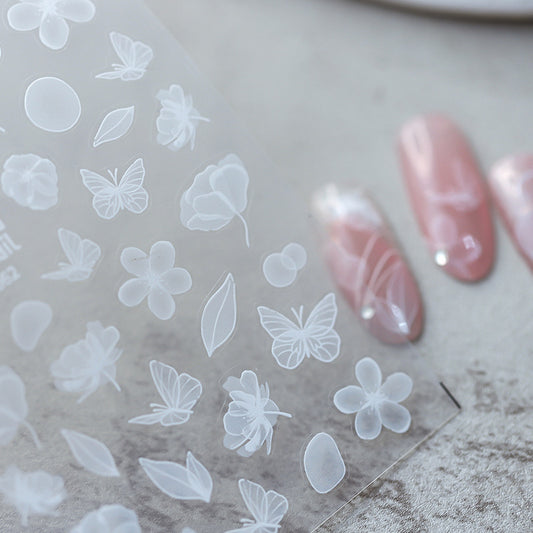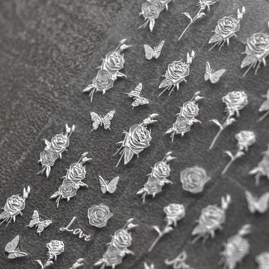 Butterfly & White Rose Flower 5D Nail Stickers for Wedding